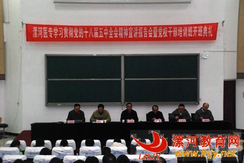 11月27日,漯河医专举行学习贯彻党的十八届五中全会精神宣讲报告会暨党校干部培训班开班典礼