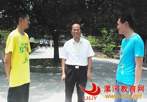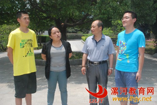 漯河高中校长赵建钊(中)向两位同学表示祝贺,希望两位同学再接再厉,早铸辉煌