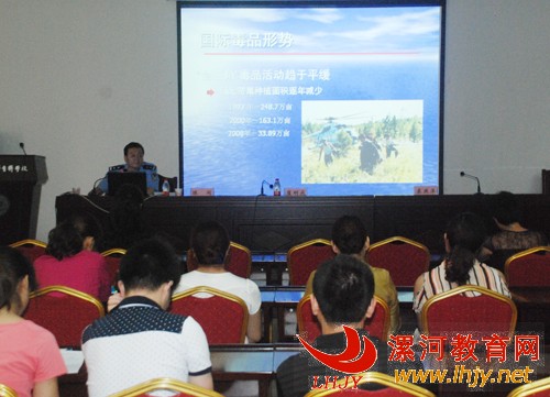 讲座现场 认真聆听 (记者:斯钰)6月26日是国际禁毒日,漯河市妇联、市禁毒委在漯河医专开展禁毒知识讲座,市禁毒支队副队长陈闯为广大青年教师做专题报告。 陈闯做了题为《依法禁毒 构建和谐——毒品问题探讨》专题报告,通过禁毒知识视频、禁毒知识幻灯片的形式进行讲座。生动形象、震撼人心的图片,真是惨痛的案例,发人深省,使人受教。通过这次禁毒讲座,很多青年教师都表示,本以为毒品离大家很远,其实在我们身边,所以今后一定要加强防毒禁毒意识,远离毒品。 为增强禁毒宣传的覆盖面,市妇联、市禁毒委、市司法局通过全市的50台数字普法机在市场、商场等人群密集的地方进行宣传,使更多的市民了解毒品的危害,提高禁毒意识,参与禁毒宣传。 |