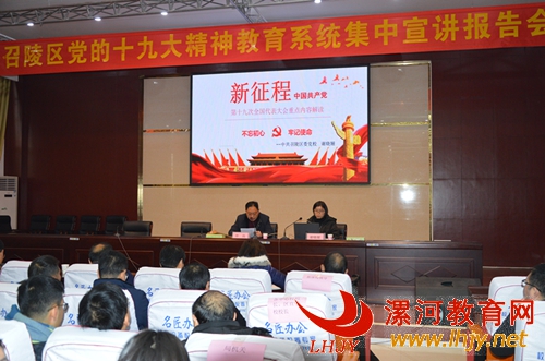 (通讯员:赵交托)为更好领会十九大精神实质和丰富内涵,推动学习活动深入扎实开展,12月15日上午,漯河市召陵区教育系统十九大精神宣讲报告会在召陵区实验中学多功能厅召开,召陵区教体局局长王怀殿出席报告会。 报告会邀请了召陵区委党校宣讲团成员谢晓娅作宣讲报告,会上,宣讲员从深刻理解十九大报告的内在逻辑和主题、学习领会党的十九大报告要准确把握几个“新”、打铁必须自身硬、做实是关键四个方面目,深刻阐述了党的十九大的重大意义和历史性贡献,全面梳理了党的十九大报告的重大理论观点、重大战略思想和重大工作部署,深入解读了党的十九大提出的一系列新思想、新观点、新要求。 召陵区教体局局长王怀殿指出,认真学习宣传贯彻党的十九大精神,是全区教育系统当前和今后一个时期的首要政治任务。要深刻领悟十九大提出的新时代、新使命、新征程、新理论,以此次宣讲活动为契机,全方位开展学习宣传贯彻工作,让十九大精神在教育系统深入人心。要结合“两学一做”,教育组织党员和教职工集中学习十九大精神,努力在全区教育系统掀起学习宣传贯彻十九大精神的热潮。 召陵区教体局全体干部职工,教育系统各支部党委会成员、城区学校教职工等共计280人参加报告会。 |