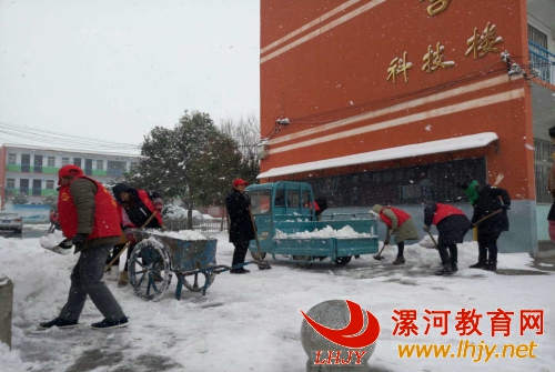 (通讯员:张雨)1月24日,漯河市迎来了2018年的第二场雪,纷纷扬扬的大雪给人们带来了出行的不便,为了给孩子们一个安全而整洁的环境,阴阳赵镇中心小学开展校园积雪大清扫活动,保证校内路面无积雪。 阴阳赵镇中心小学始终将安全工作放在第一位,提前制定了《防暴雪应急预案》以及除雪活动方案,准备好除雪工具。从24日下午放学,该校老师都自发开始铲除校园主干道上的积雪。25日上午一大早,该校全体老师提前来到学校,展开了一场清扫积雪的活动。 刘校长带领部分住校老师从早上五点多开始清扫积雪。教师们自发地拿着铁锹、扫把、耙子、簸箕等工具,清扫学校门口通道及园内的积雪。党、团员教师带头,大家齐动手,有的扫,有的铲,有的推,忙得不亦乐乎,尽管天气很冷,老师们热情高涨、干劲十足。经过奋勇作战,学校门口的道路和校内主干道的积雪被打扫得干干净净。 (总编审:朱永辉 编辑:焦子洋 王飞飞 李 攀) 漯河市教育局微信公众号(lhsjyj)、漯河教育电视微信公众号(hnlhetv),依托漯河教育局官网、漯河教育电视台,为您及时发布最权威教育资讯,解读最新招生考试政策,传递最新教育理念,展示漯河素质教育成果,展现漯河教育形象,让教育就在您身边,欢迎关注! |